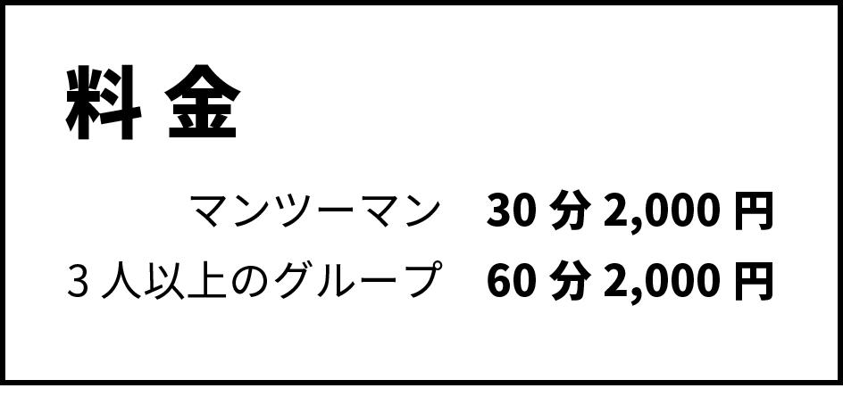 ※こちらは本サイトから直接お申込みいただいた場合の料金になります。 Airbnbサイトから申し込んだ場合は割引できませんのでご注意ください。 Airbnb参考サイトアドレス https://www.airbnb.jp/experiences/82311